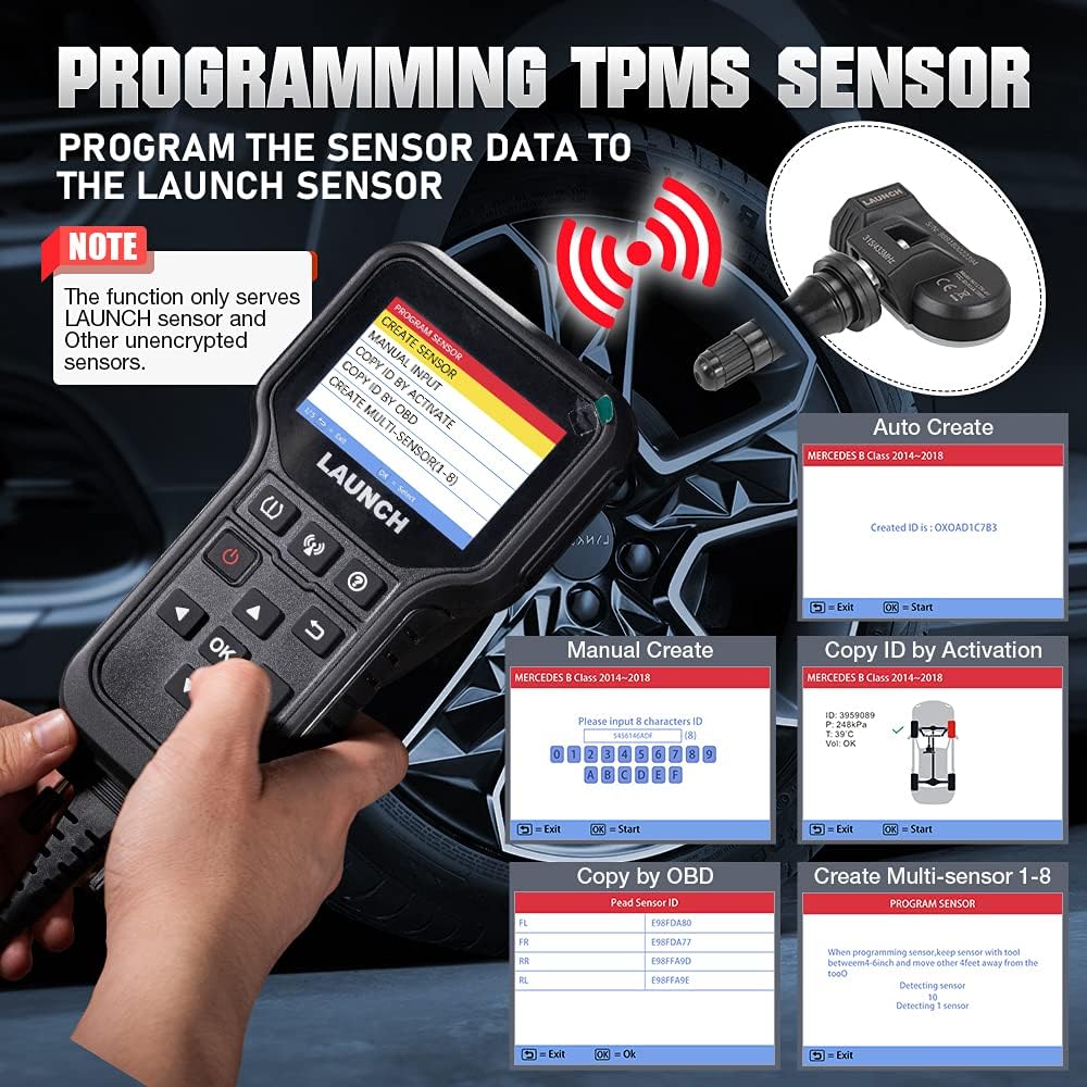 - Launch CRT5011E can program the sensor by receiving multi-frequency 315MHz/433MHz. Only support LAUNCH Sensor.