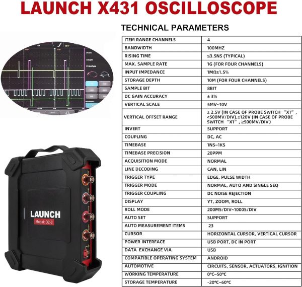 LAUNCH X431 O2-2 Oscilloscope Scopebox Analizador 4 Channel Digital Scopebox Tester USB Port Works with X431 PAD VII, PAD V, PAD III (4 Channels)